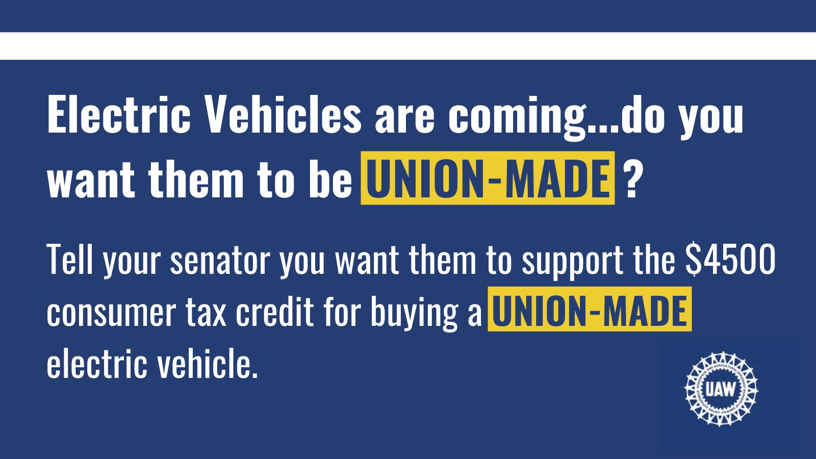 Uaw On Twitter Expanding Ev Tax Credits For American Autos Built With Union Labor Is Good Policy Call Your Senators 866 287 6350 And Tell Them To Support The Ev Tax Credit For Union Made